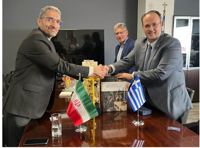 ملاقات سفیر و رایزن اقتصادی سفارت جمهوری اسلامی ایران با رییس و اعضای هیات مدیره اتاق بازرگانی استان آخایای یونان به مرکزیت شهر بندری پاتراس. زمینههای همکاری در حوزههای اقتصادی با پاتراس مورد بررسی قرار گرفت. طرفین بر تعاملات تجاری بیشتر بین تجار ایرانی و یونانی تاکید کردند.